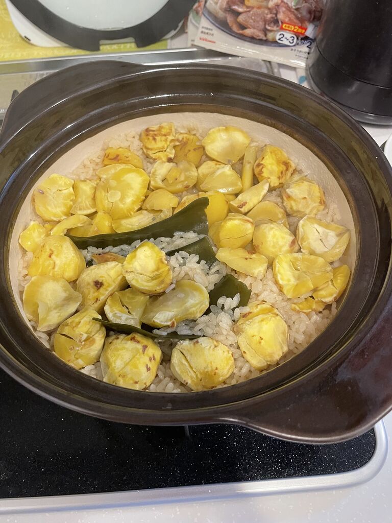 この間大きな栗が手に入ったので、栗ご飯を作りました!
