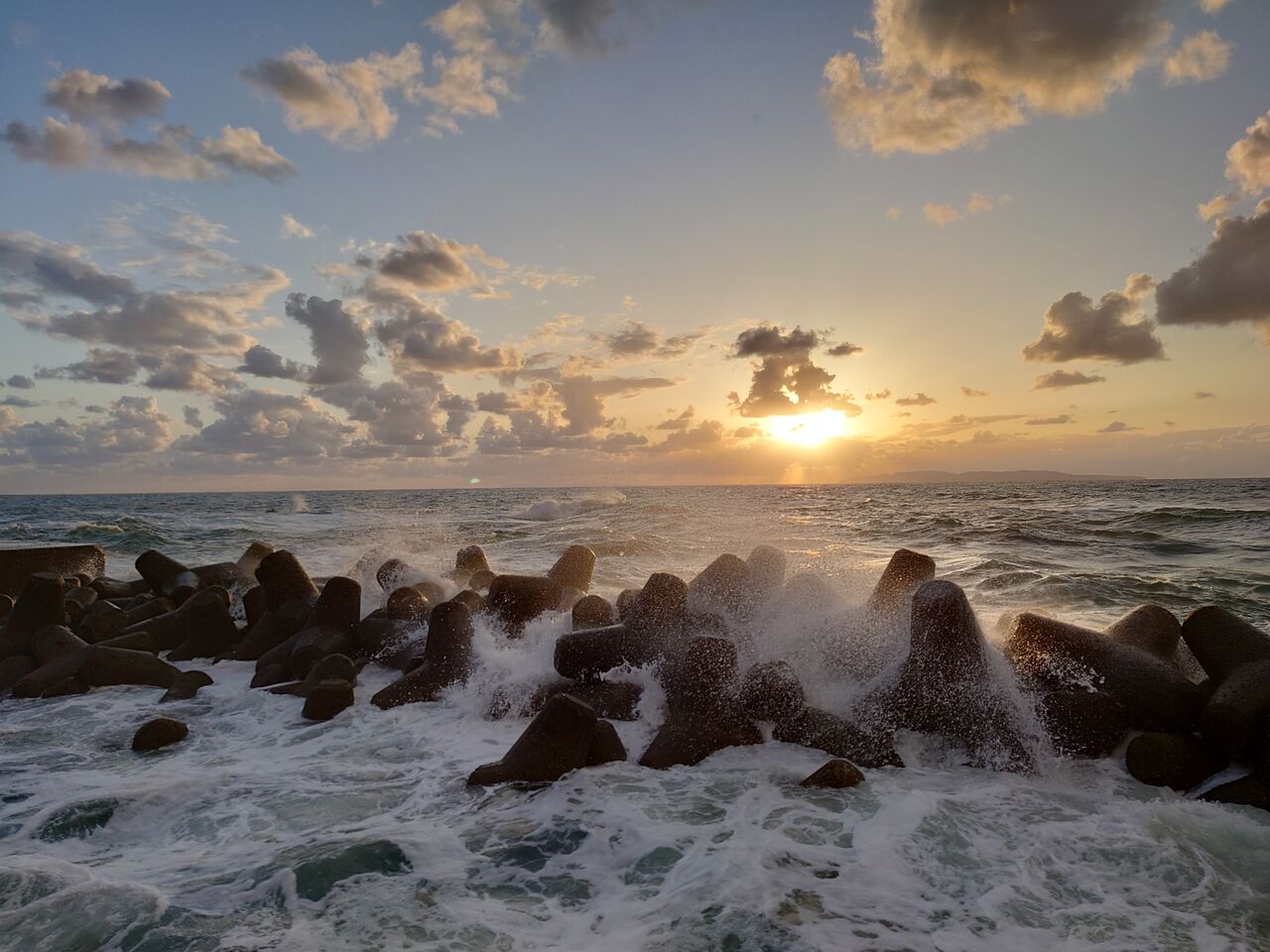 大雨が降ったあとで海も荒れている中、